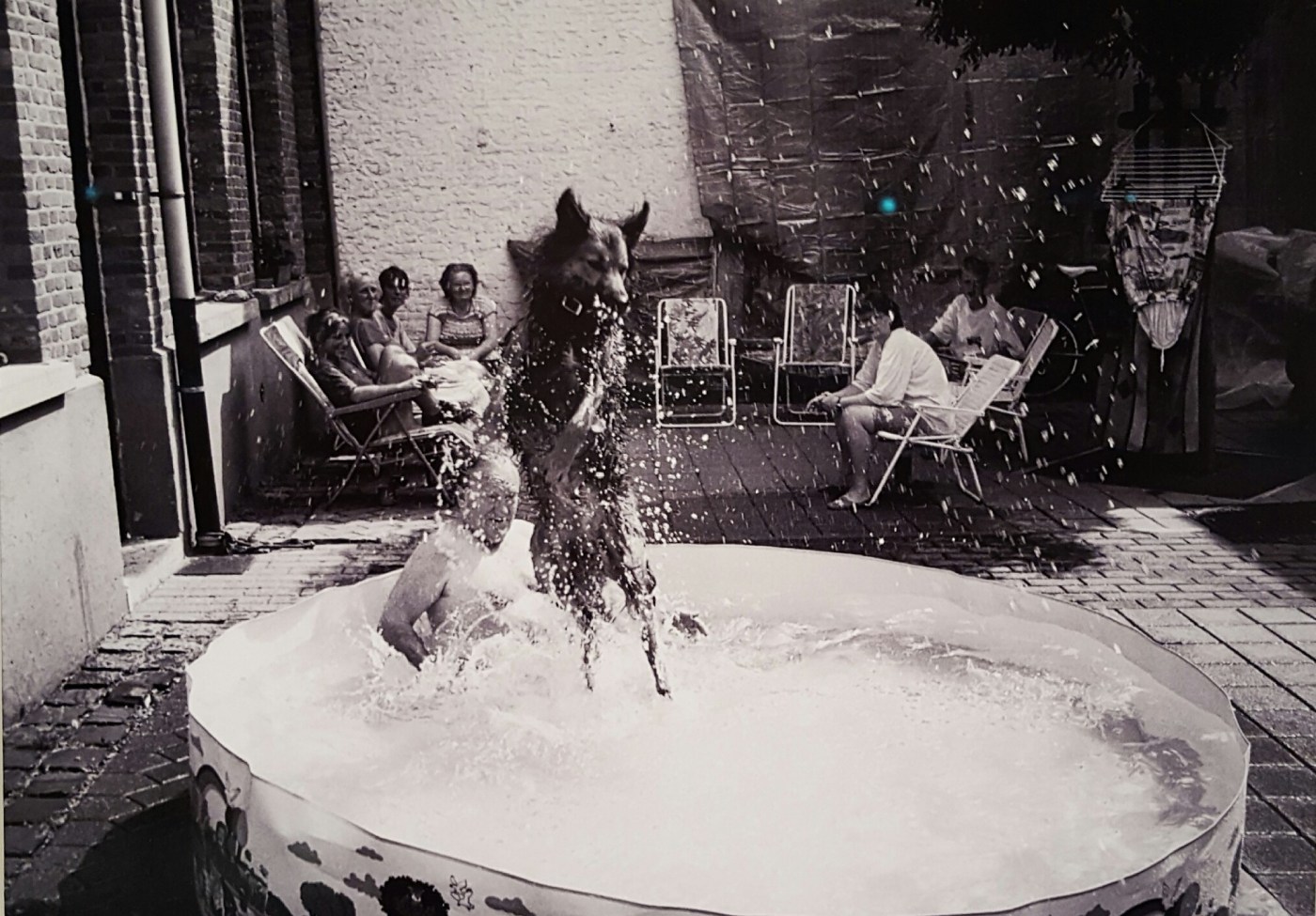 Zie je dan het water al glinsteren in de zon? De grootvader die verkoeling in het plonsbadje zoekt? De hond die nieuwsgierig de temperatuur van het nat verkent?
