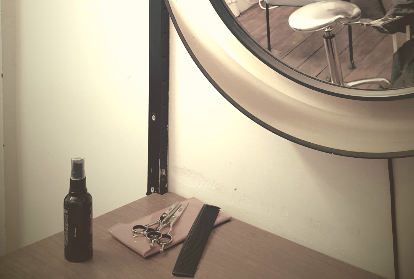 ‘Zo. Zet je maar op die stoel,’ zegt de kapster terwijl ze een zwarte cape rond mijn schouders drapeert. ‘Wat kan ik je aanbieden om te drinken?’ Ik sta recht, zet drie stappen en nestel me in de kappersstoel aan de overkant. ‘Een koffie graag.’
