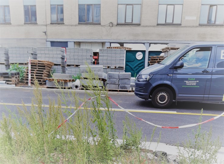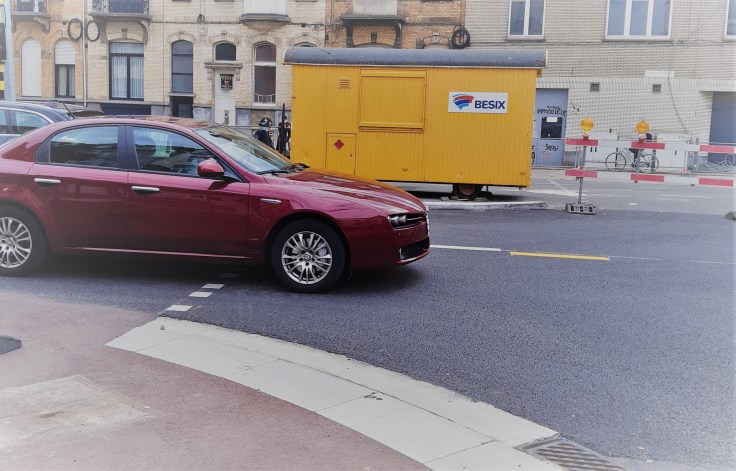 We hebben de fietsroute naar de nieuwe school al eens ingeoefend, maar voor die eerste schooldag besluit ik dat ik nog een keer mee rij. Gelukkig maar, want om de eerste hoek begint het al. De heraanleg van de Plantijn Moretuslei is op één nacht tijd drastisch veranderd: de aannemer is erin geslaagd het doorgaand verkeer van en naar de stad weer vlot te krijgen. Samen over eenzelfde baanvak, maar het bolt (toch min of meer).